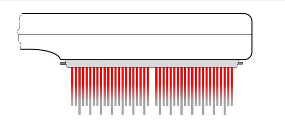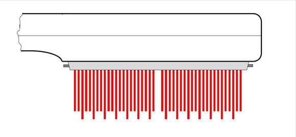 Bei einer Temperatur von ca. 60°C im oberen Bereich des Kammes wird das Ungeziefer abgetötet und von einem Silicon-Magazin aufgenommen.